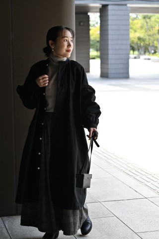 別珍素材と合わせてクラシカルに、レディな装いに仕上げます。