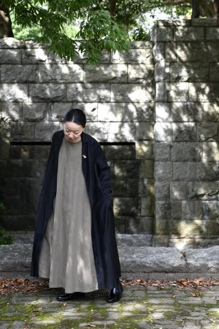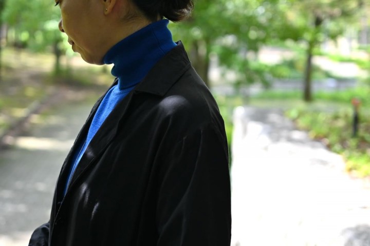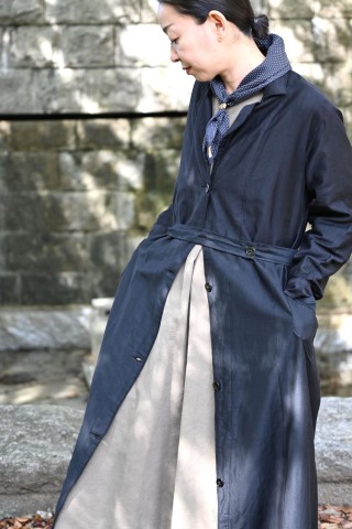 コートと言ってもシャツくらいの薄手素材ながら、たっぷりとした丈感と柔らかく育った生地が贅沢な一枚です。