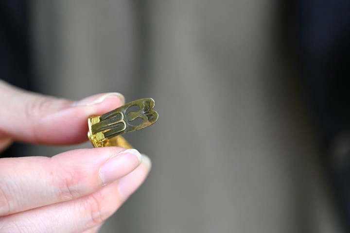 こちらは、イヤリングのように留め具を広げてスカーフを挟むものなのですが、