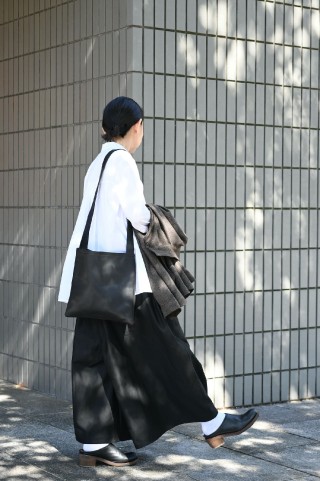 その上から「YARMO」を羽織れば、落ち着きの中に軽やかさが生まれる。