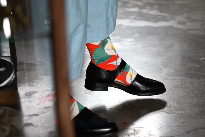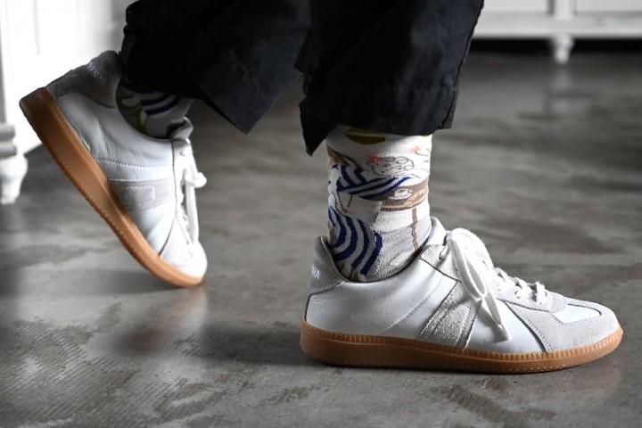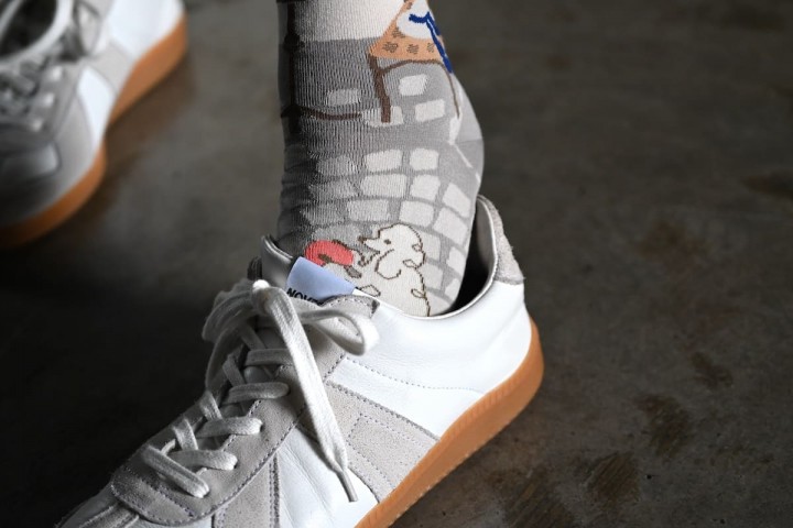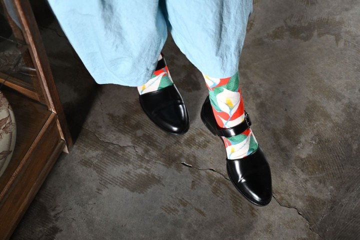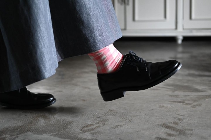 上質なエジプト綿を使用し、確かな技術で丁寧に編み立てられる一足。