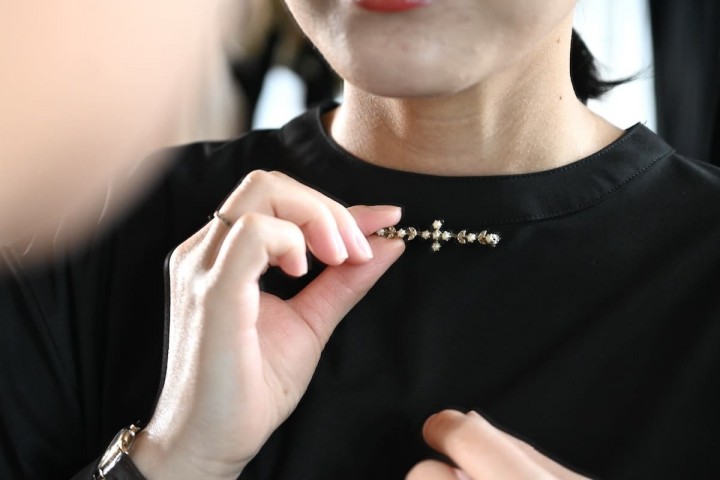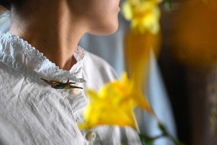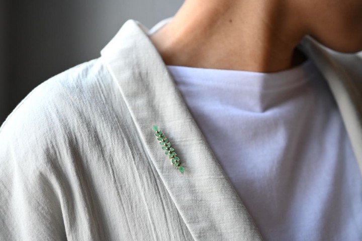 手元や耳元は控えめにしたい場面でも、ブローチなら少し遊びを加えてみる、なんていう楽しみ方も。