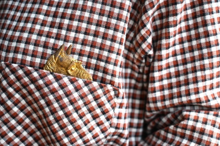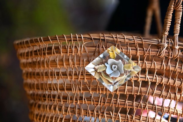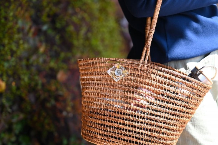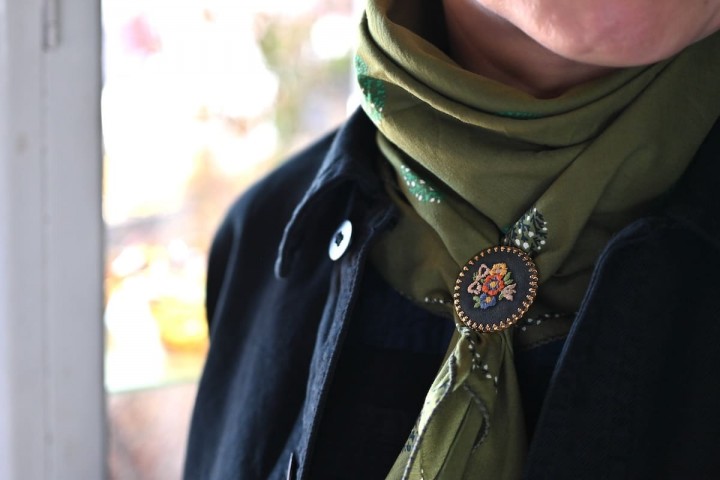 洋服だけでなく、いろんなアイテムに身につけられるのが、ブローチの嬉しいところ。