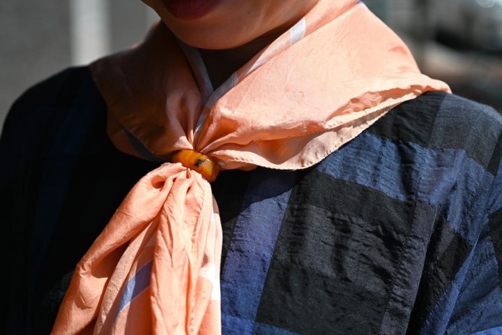 気温差のある日、日除けしたい日のスカーフに簡単アレンジ。