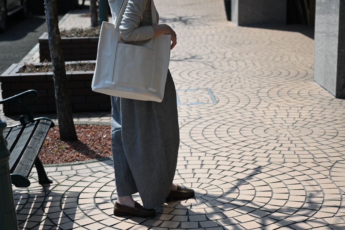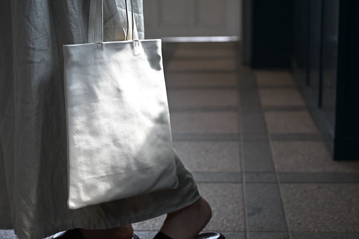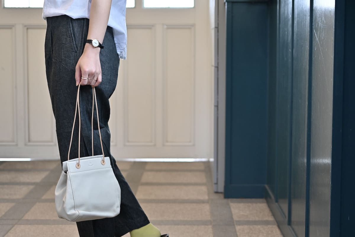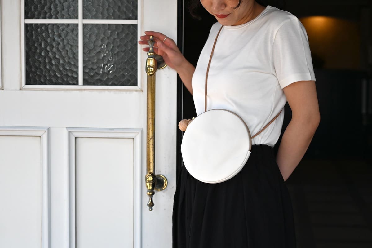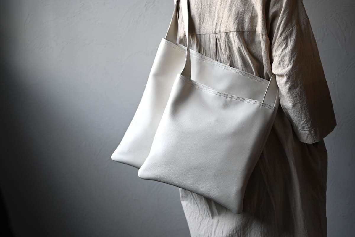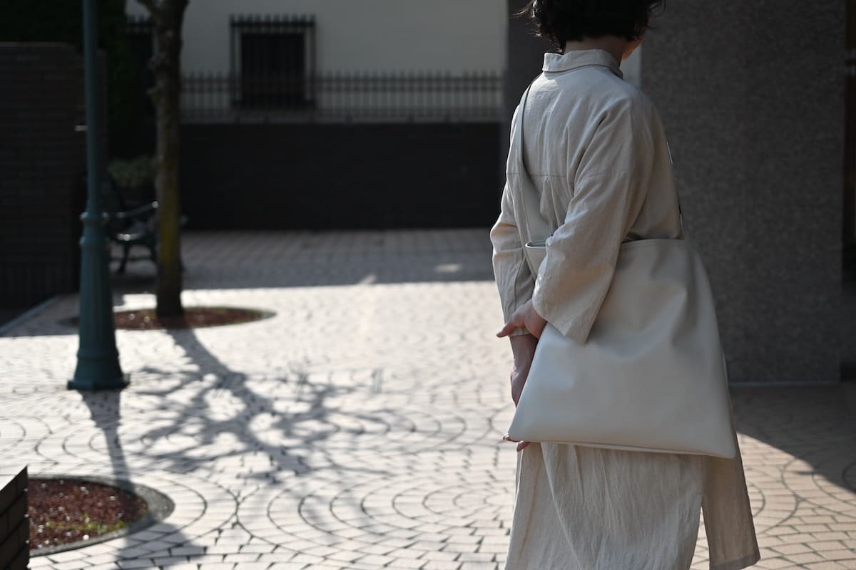 「軽やかに、涼やかに。着こなしのバランスを整える、白いレザーバッグ」です。