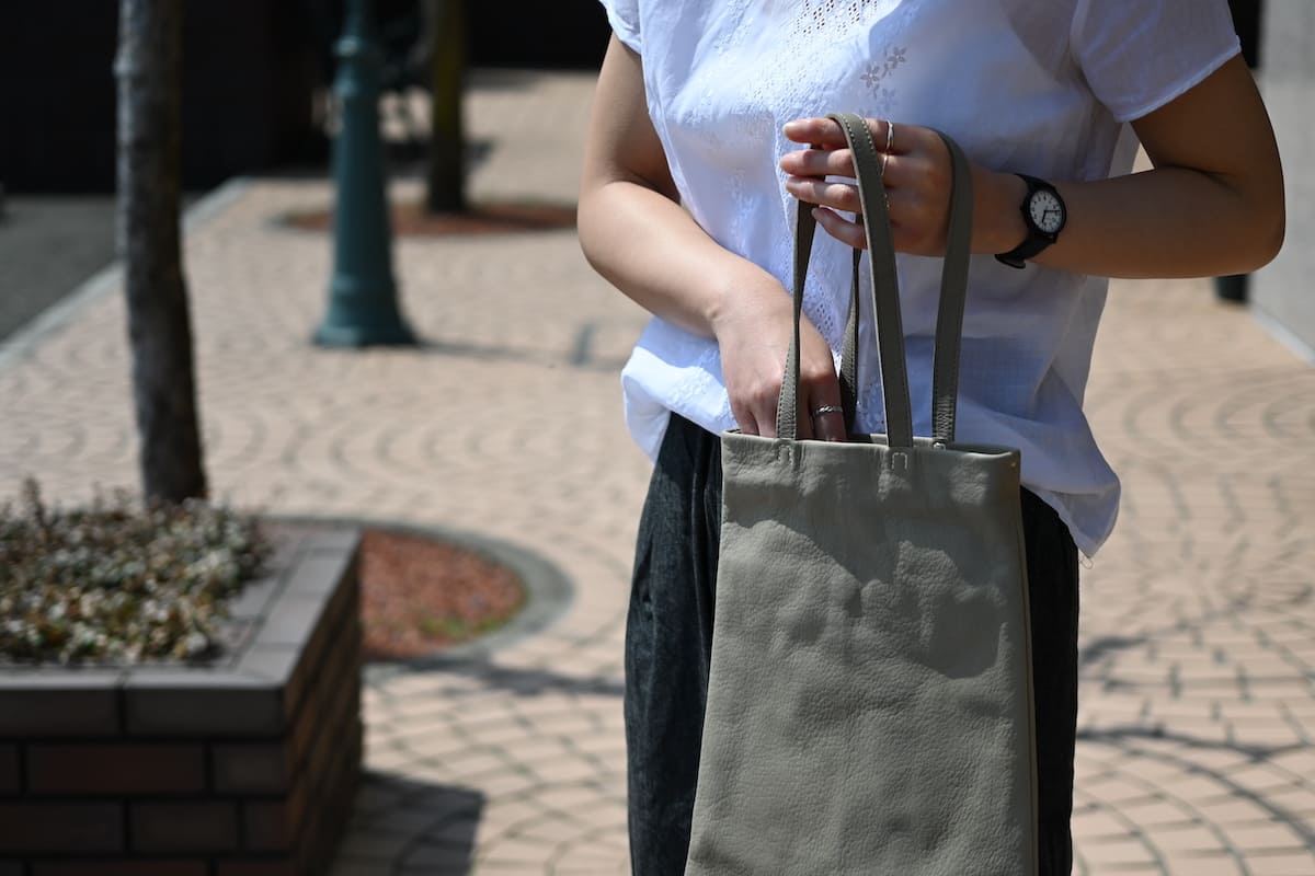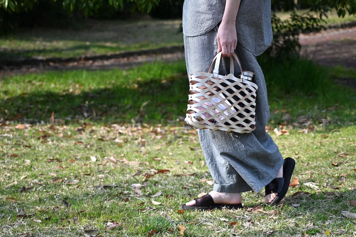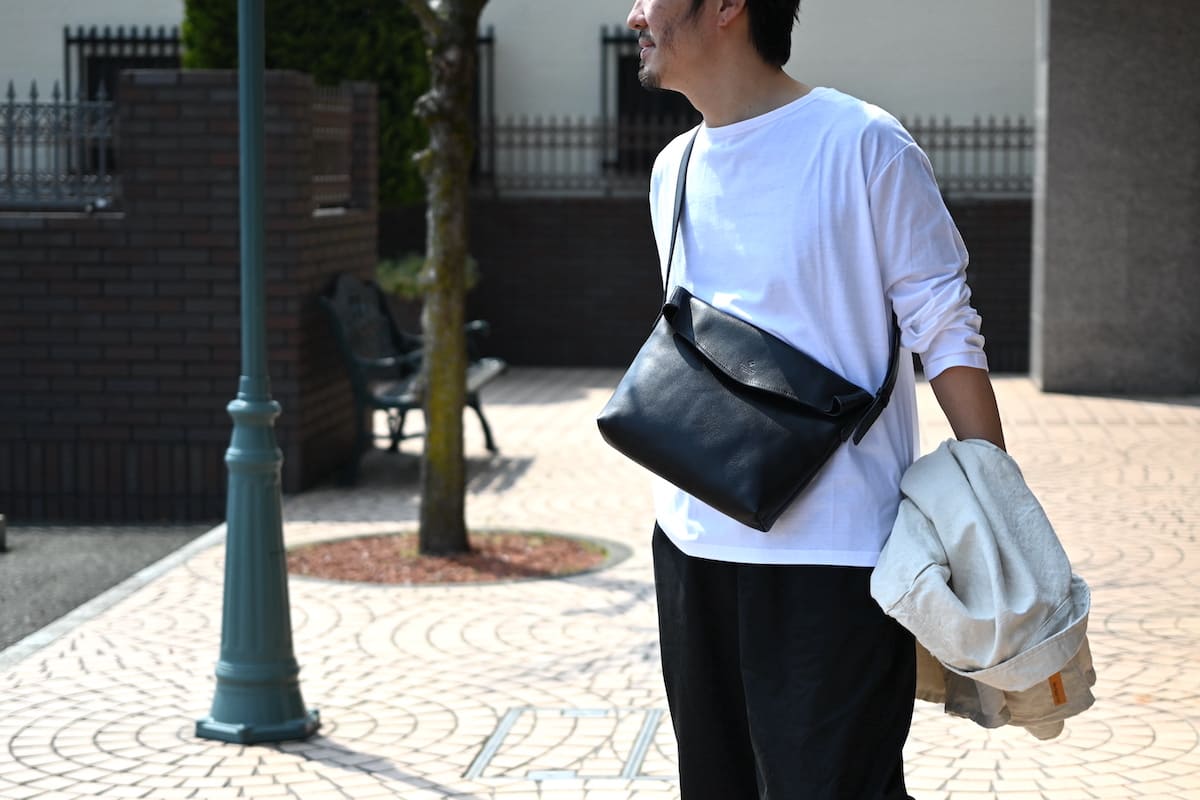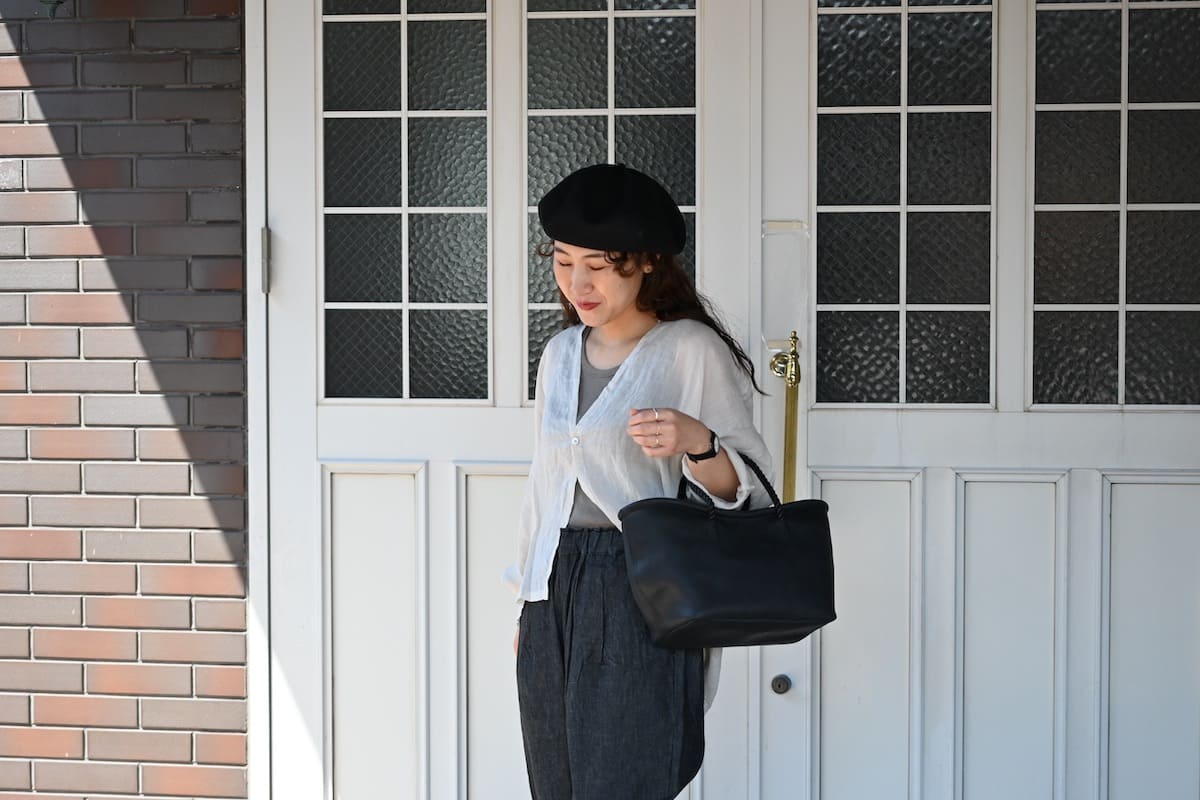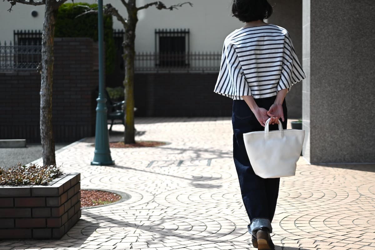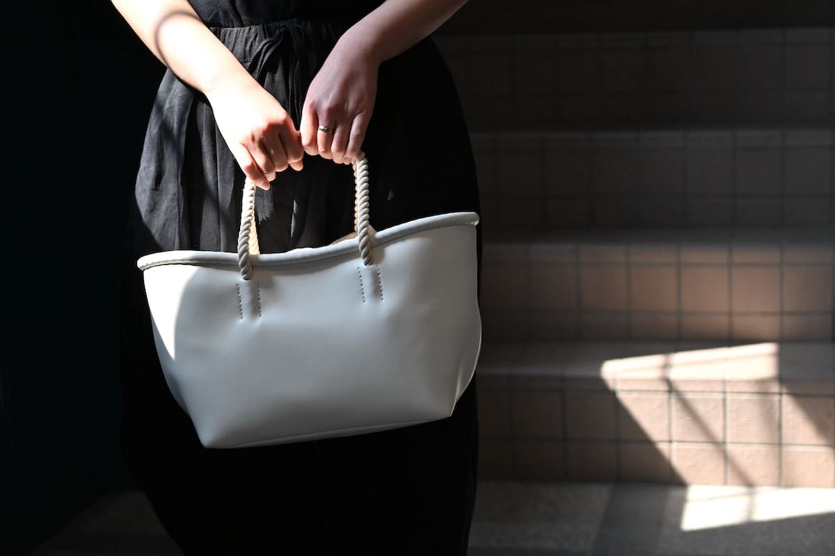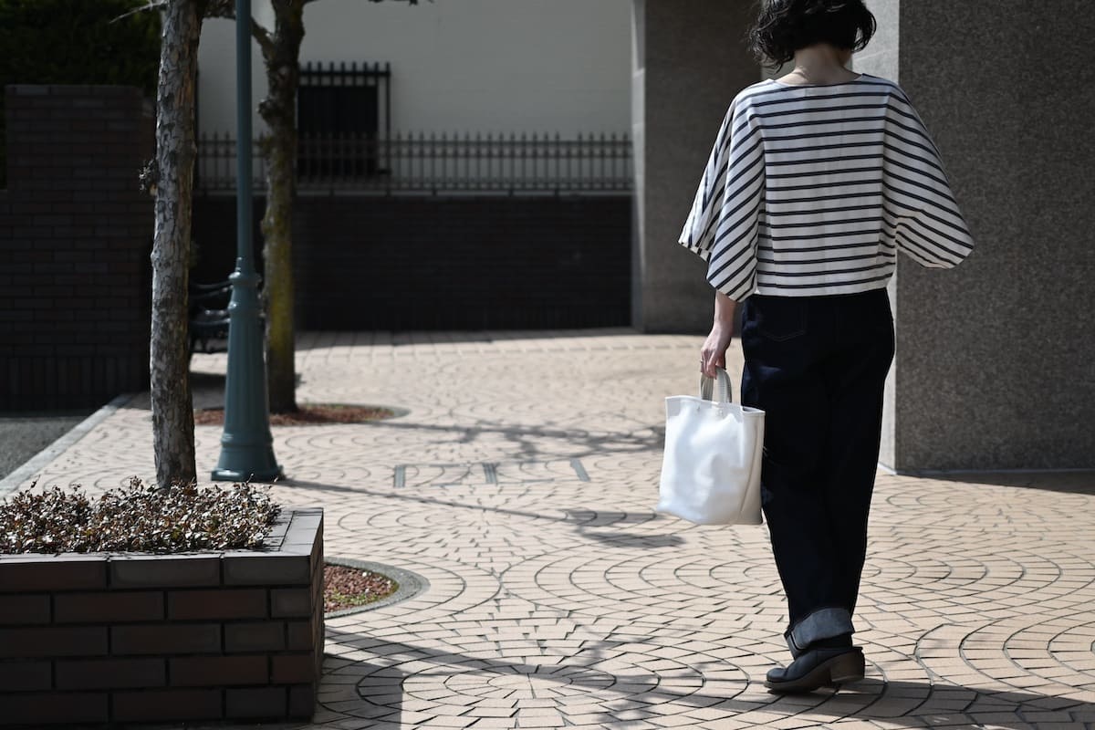 「軽やかに、涼やかに。着こなしのバランスを整える、白いレザーバッグ」です。