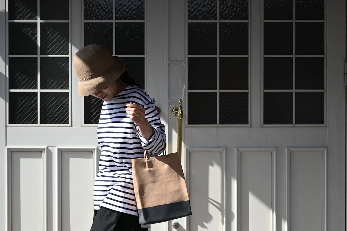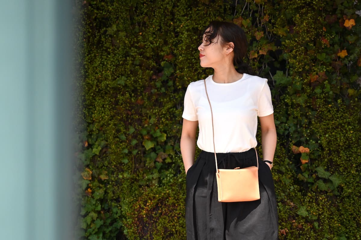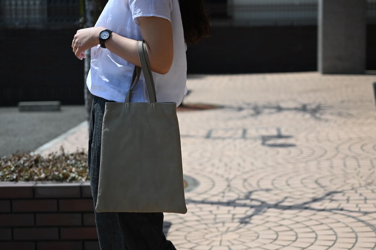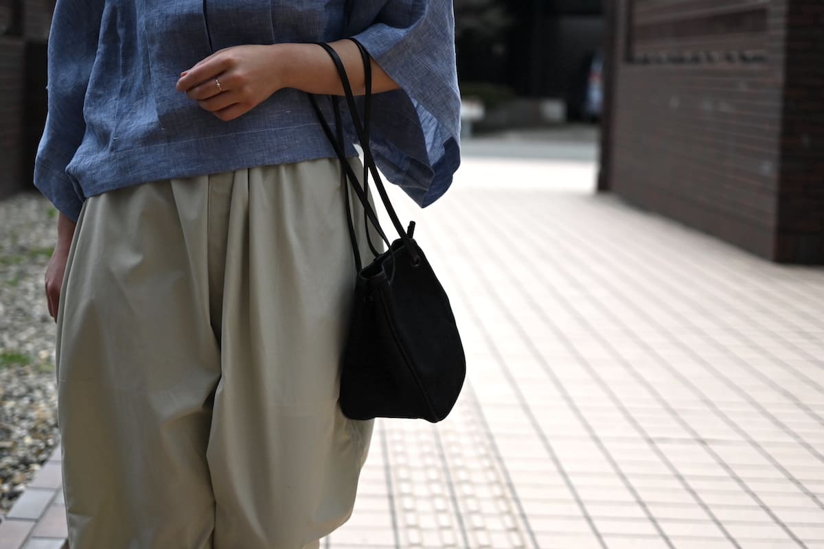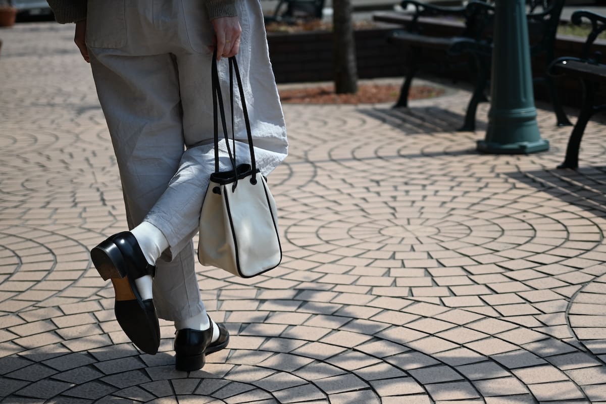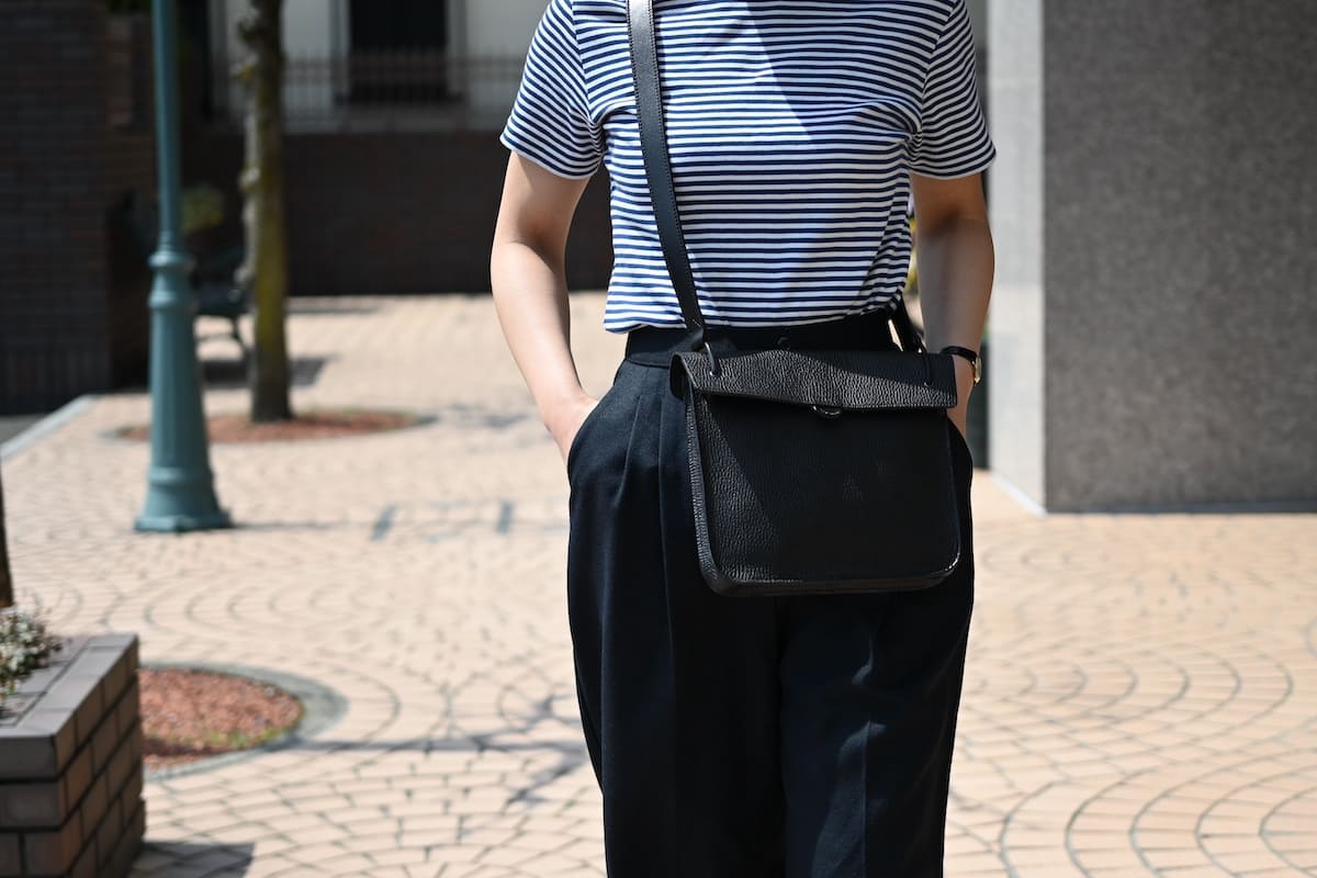 「軽やかに、涼やかに。着こなしのバランスを整える、白いレザーバッグ」です。