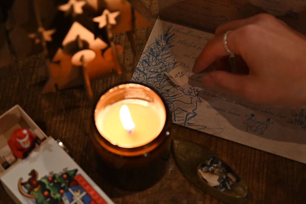 Kinder schreiben Briefe und versuchen, gute Kinder zu sein.