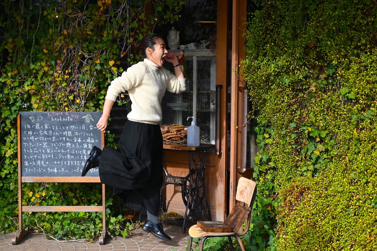 古物と調和する森のような素敵な空間、緑と花々、それからドライフラワーが咲きほこる素敵な場所。